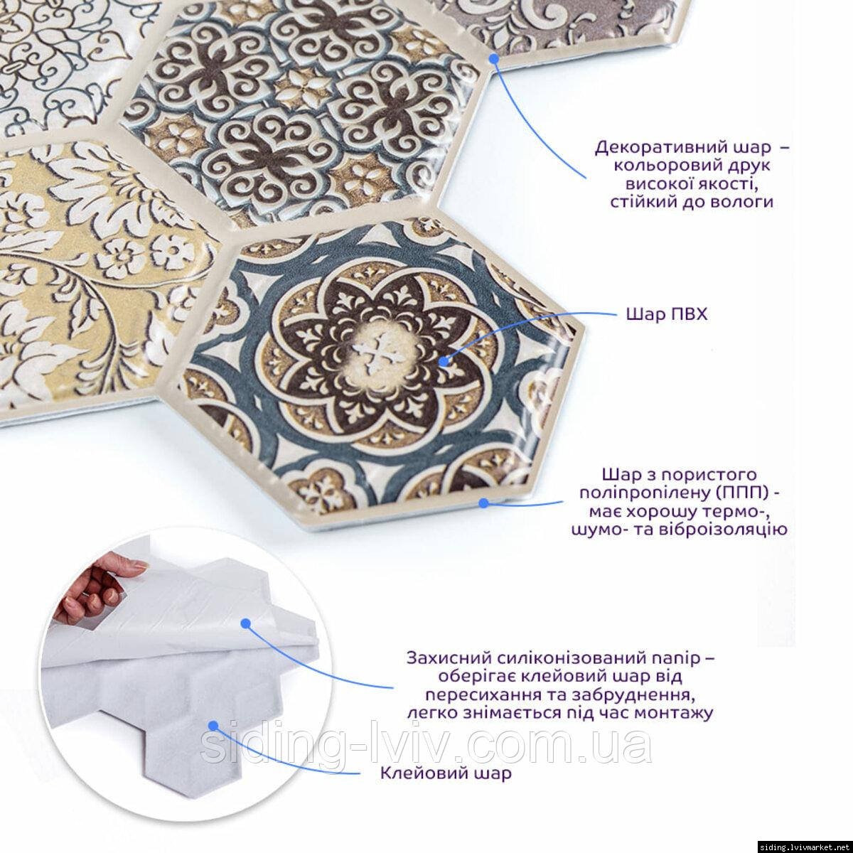 Декоративна ПВХ плитка на самоклейці 280х300х5мм Соти, ціна за 1 шт. (СПП-504) SW-00000673