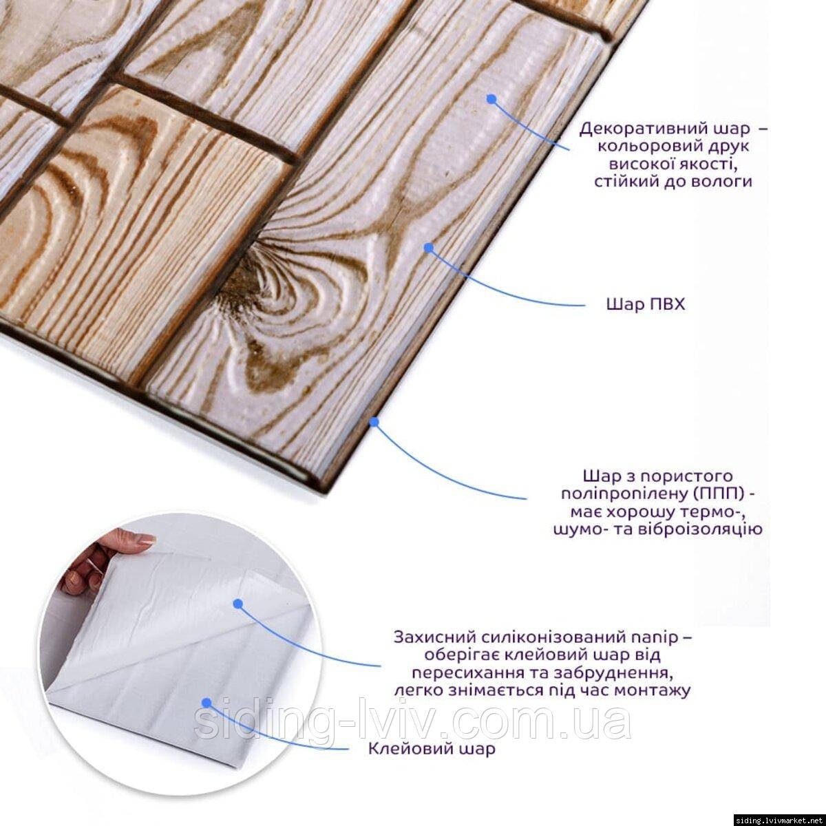 Самоклеючі декоративні панелі СПП - новинка у світі самоклейок. Це невеликі плитки із трендовим малюнком під натуральні матеріали. Прозорий захисний шар із поліуретану захищає покриття від стирання та механічних пошкоджень.