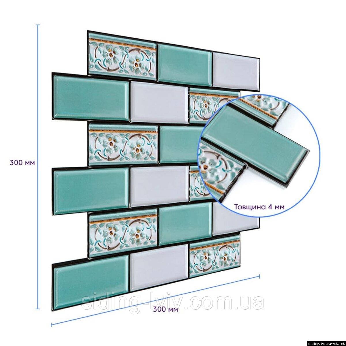 Декоративна ПВХ плитка на самоклейці 300х300х5мм М'ятна, ціна за 1 шт. (СПП-505) SW-00001139