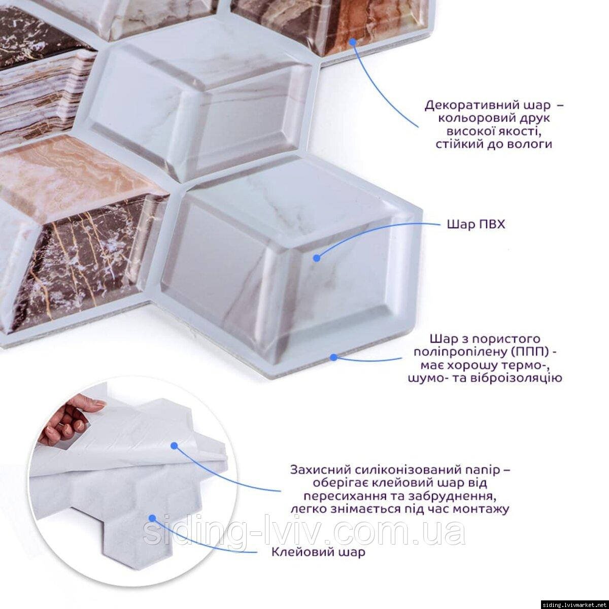 Декоративна ПВХ плитка на самоклейці 3D куби