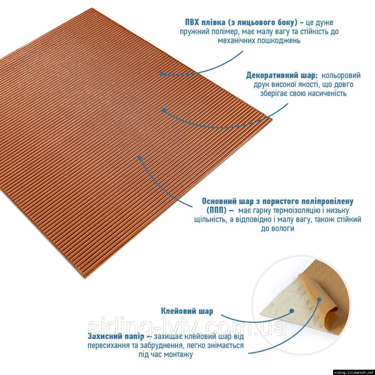 - ПВХ плівка (з лицьового боку) - це полімер, що складається з