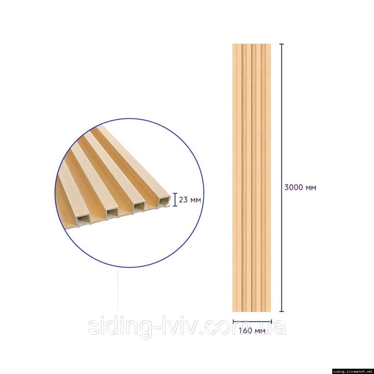 Рейка декоративна WPC для стін 3000х160х23мм Світле дерево SW-00002572-