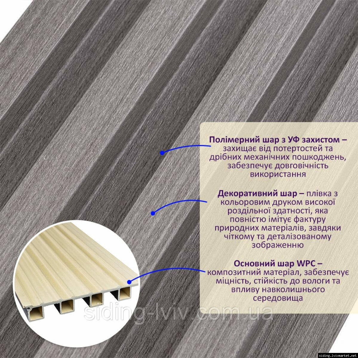 Рейка декоративна WPC стінова 3000х160х23мм Сталева сіра SW-00001528