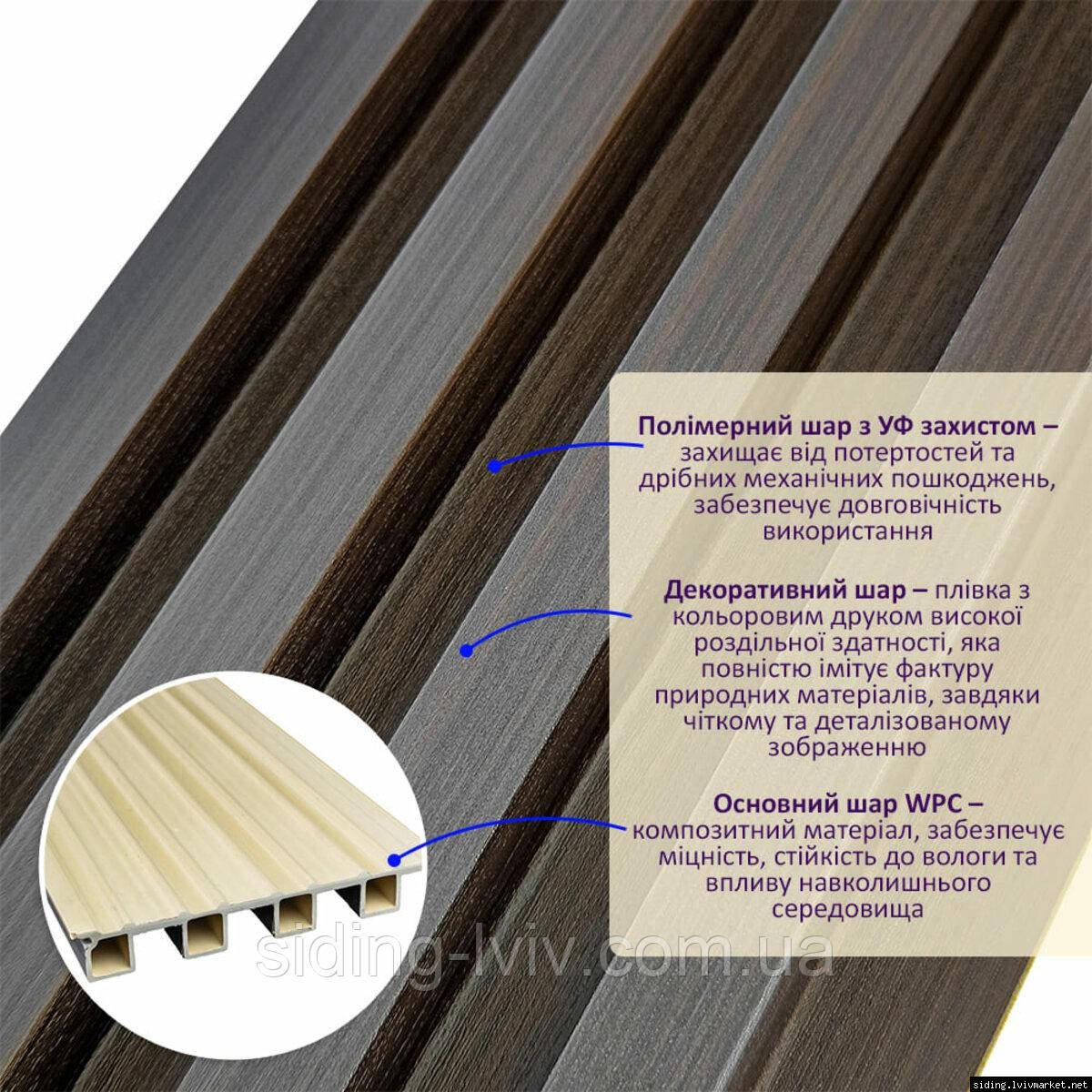 Рейка декоративна WPC стінова 3000х160х23мм Венге SW-00001537