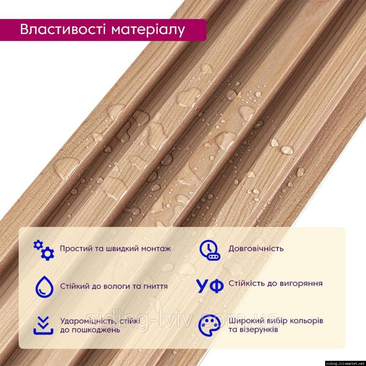 • Стійкість до впливу ультрафіолету: стінові панелі WPC зберігають свій колір та структуру під впливом ультрафіолетового випромінювання.