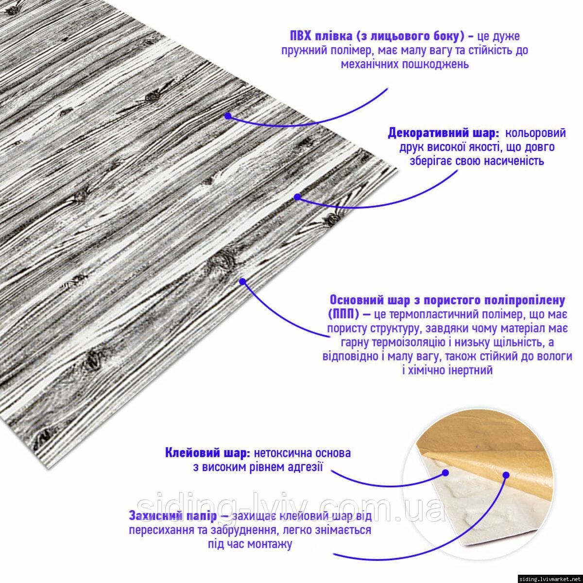 Самоклеюча 3D панель 19600x700x3мм Дерево Зебра SW-00001475