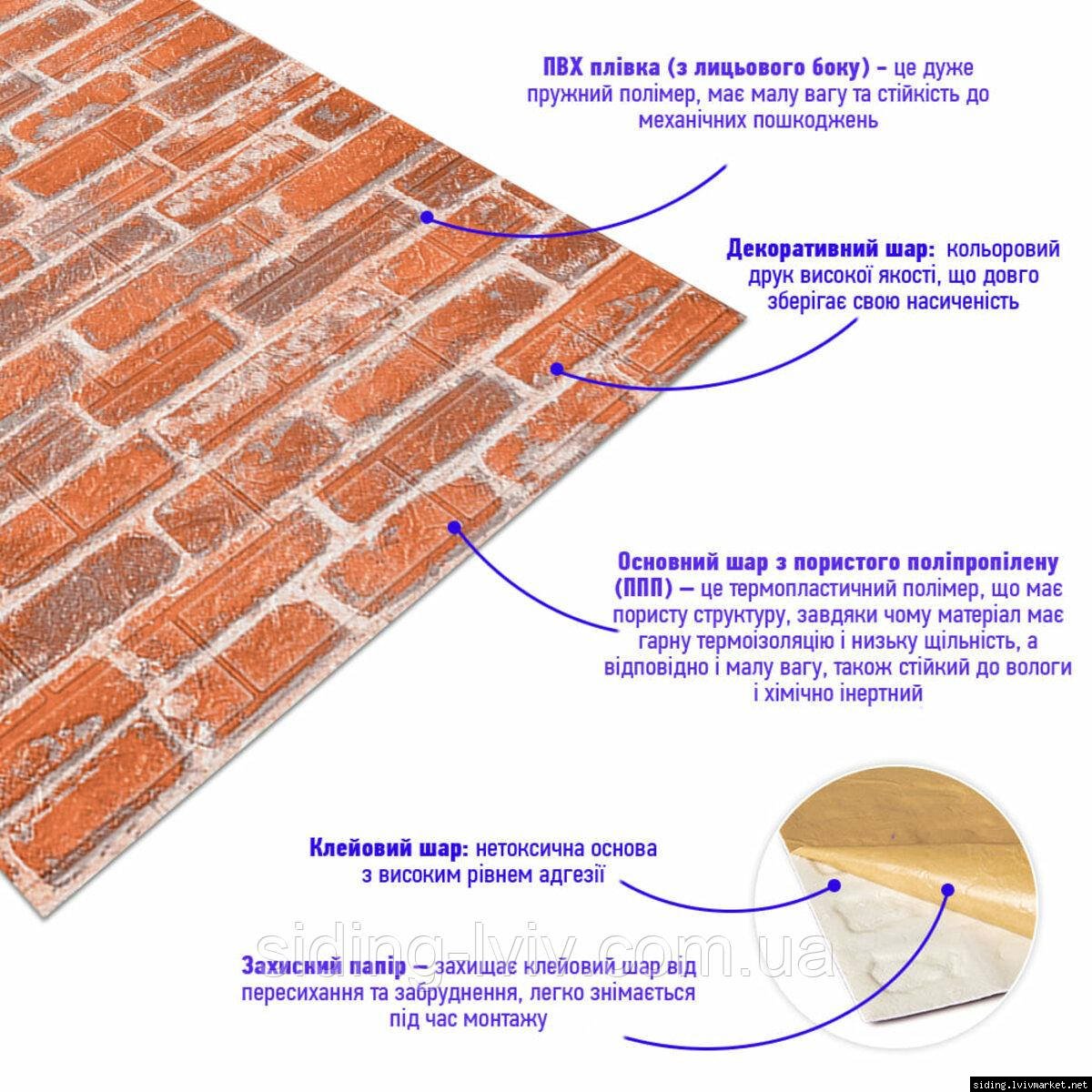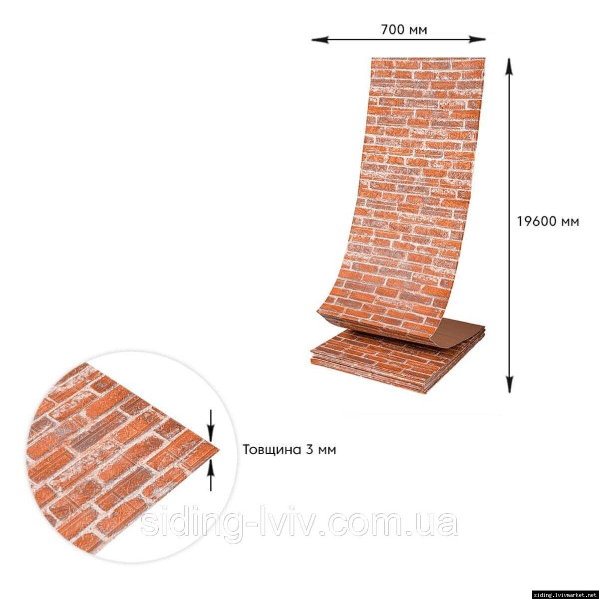 Самоклеюча 3D панель 19600x700x3мм Руда Катеринославська Цегла SW-00001370