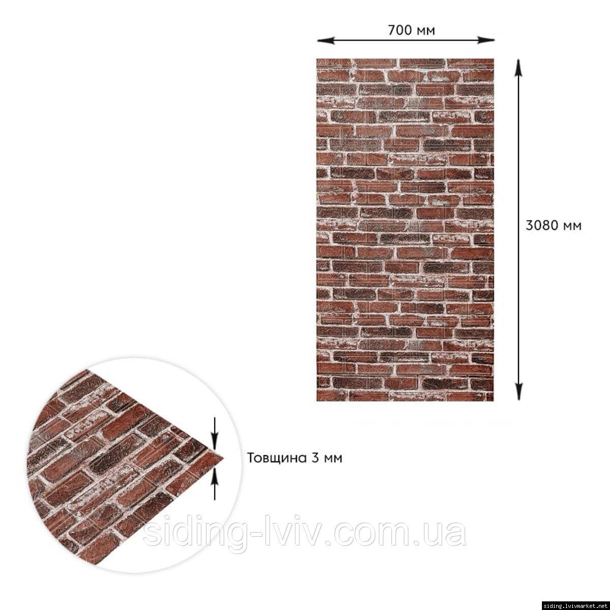 Самоклеюча 3D панель 3080x700x3мм Червона Катеринославська Цегла SW-00001761