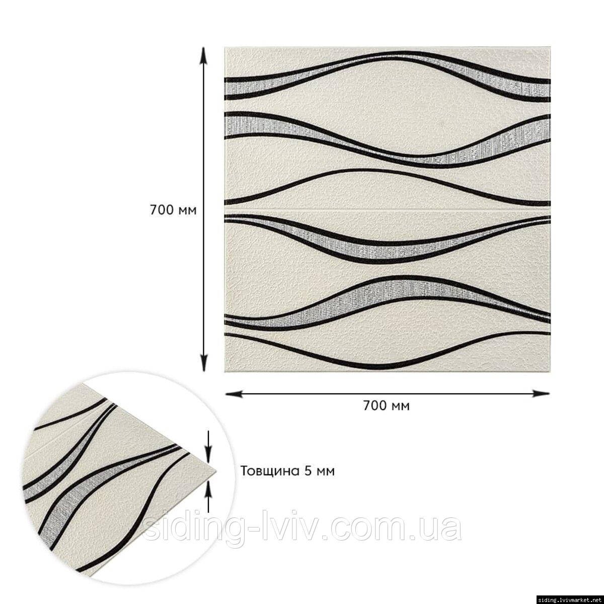 Самоклеюча 3D панель білі хвилі 700x700x5мм (195)(допустима похибка-3%)