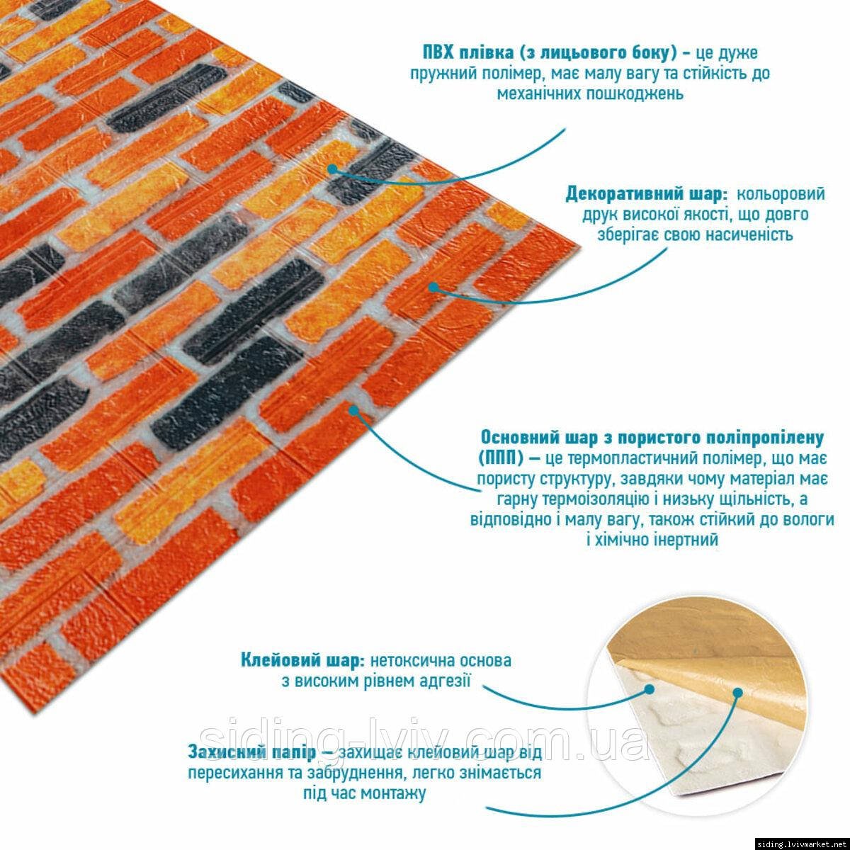 Самоклеюча 3D панель під бежево-коричневу катеринославську цеглу 20000x700x3мм SW-00002570-
