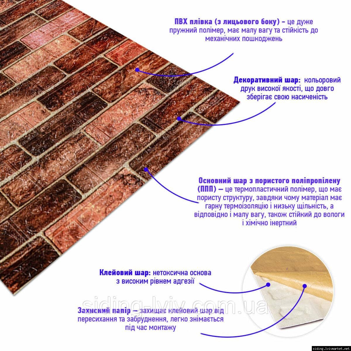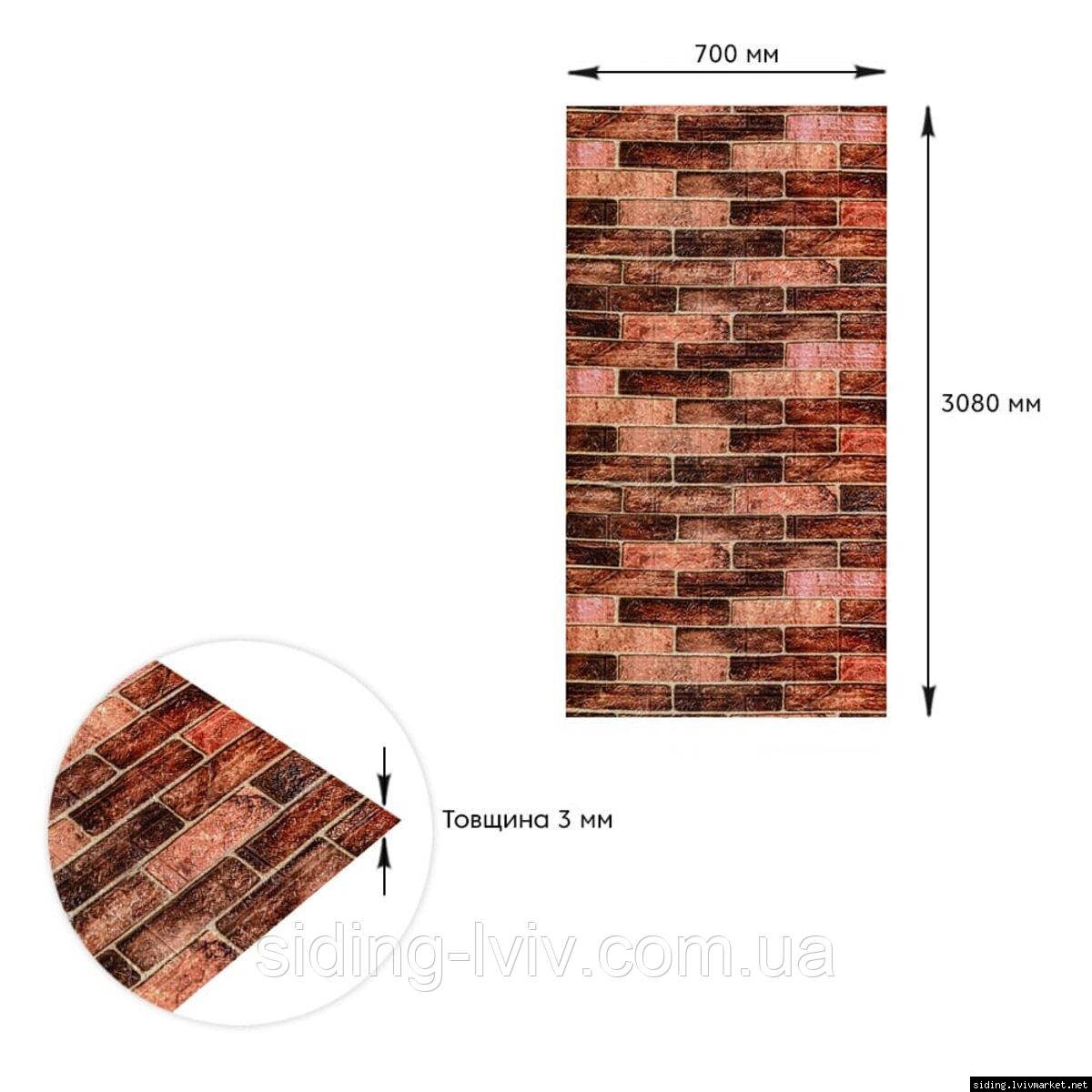 Самоклеюча 3D панель під коричневу катеринославську цеглу 3080x700x3мм SW-00001768