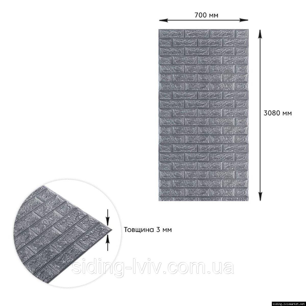 Самоклеюча 3D панель під срібну цеглу в рулоні 3080x700x3мм (R017-3)
