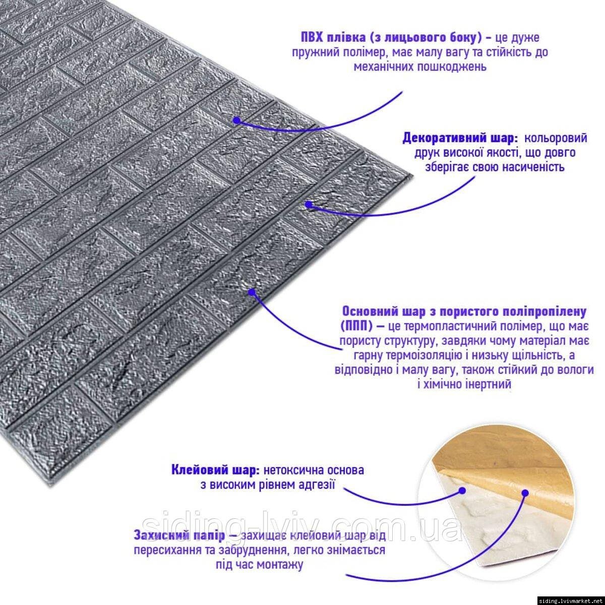 Самоклеюча 3D панель під срібну цеглу в рулоні 19600x700x3мм