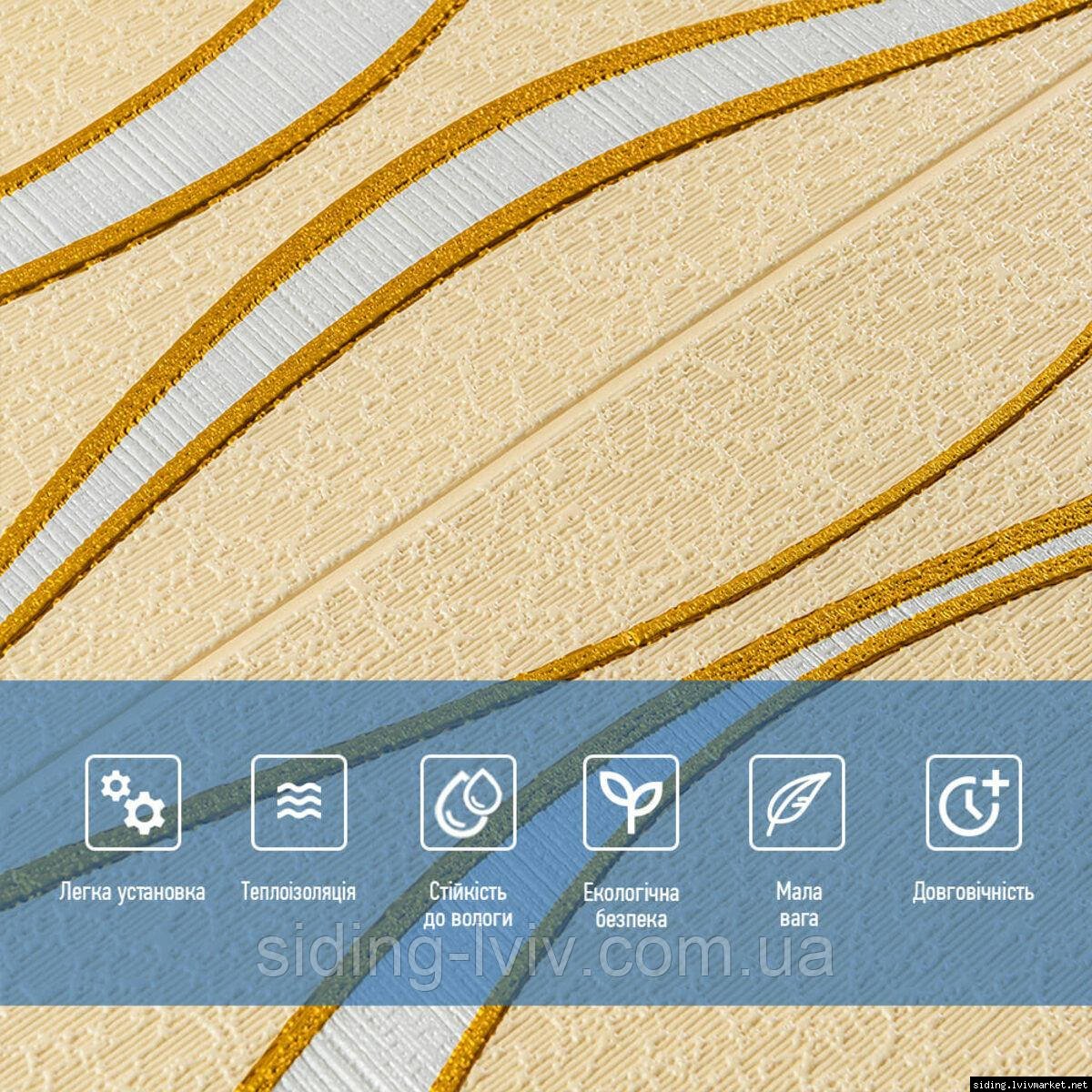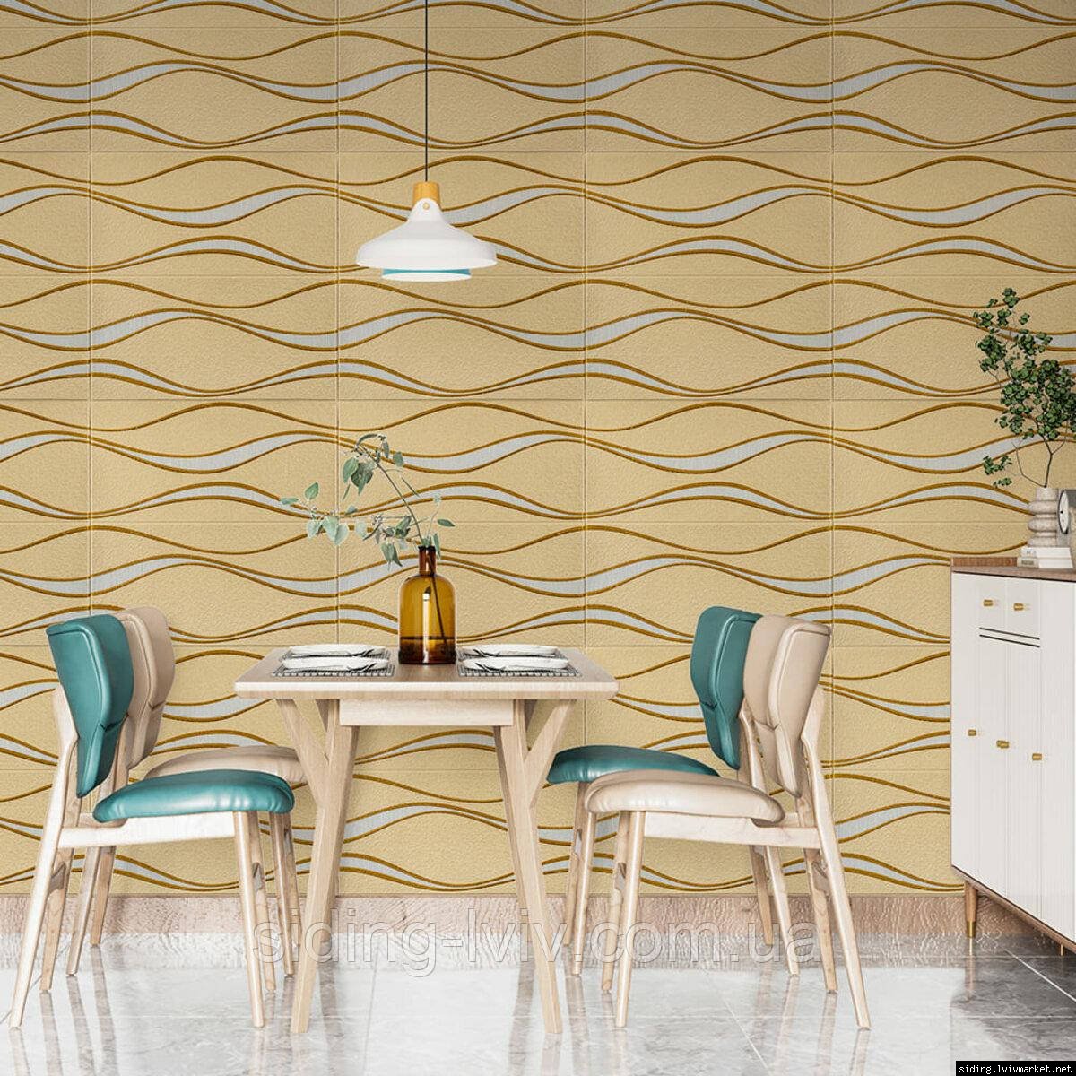Самоклеюча 3D панельі 700x700x5мм золоті хвилі (194) SW-00000766