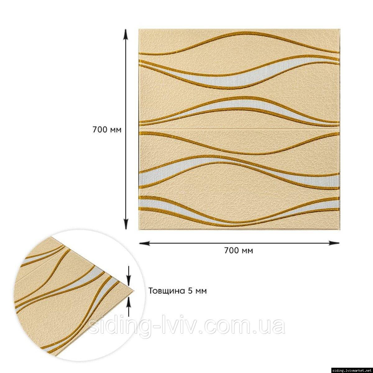 Самоклеюча 3D панель золоті хвилі 700x700x5мм (194)(допустима похибка-3%)